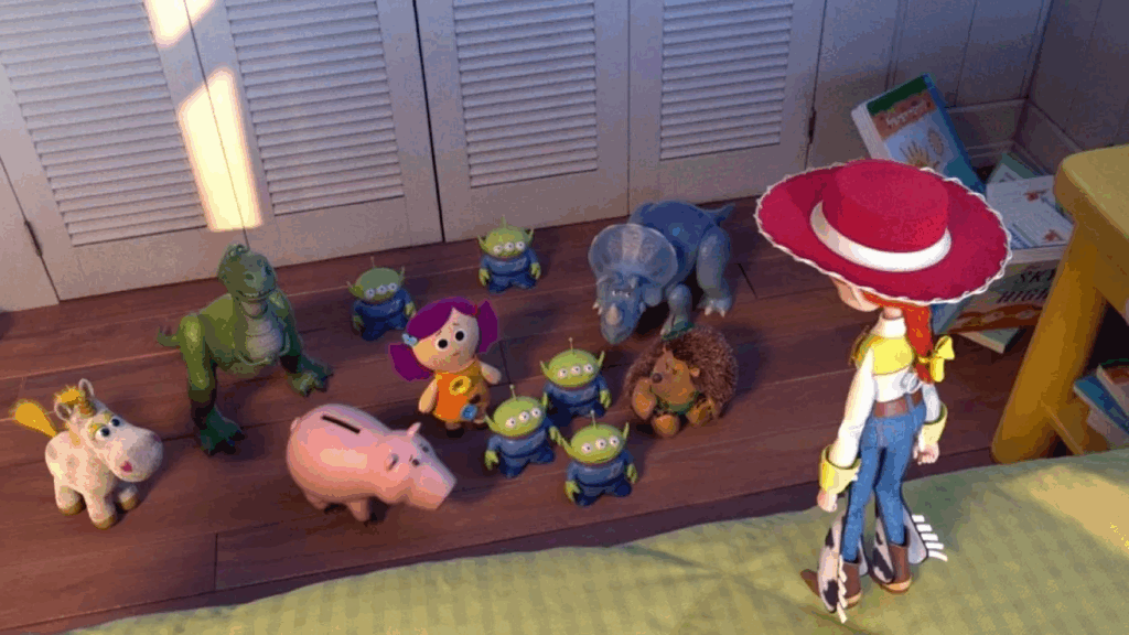 Os rostos dos personagens dizem tudo: pânico puro. Rex, Sr. e Sra. Cabeça de Batata e Slinky olham para a caixa como se ela escondesse o próprio apocalipse dos brinquedos. Lilypad chega sorridente, mas o público logo percebe, por trás da voz doce, há uma ameaça disfarçada.