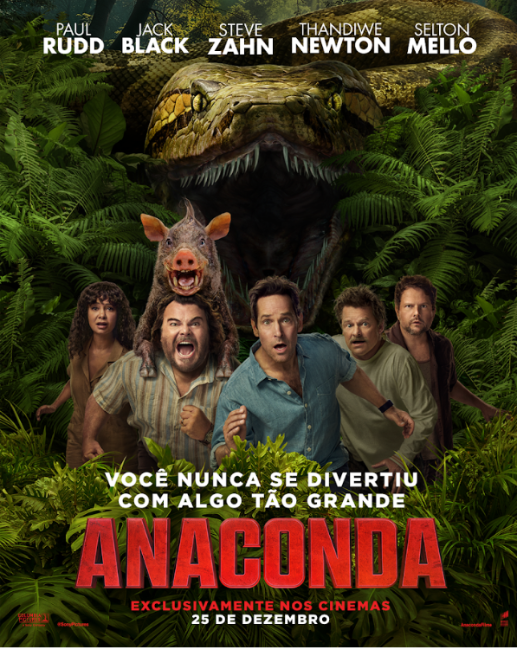 Dirigido por Tom Gormican (O Peso do Talento), e com estreia marcada para 25 de dezembro nos cinemas do Brasil, a trama é situada na Amazônia e acompanha Doug (Jack Black) e Griff (Paul Rudd), dois amigos que enfrentam uma crise de meia-idade e resolvem realizar o antigo sonho de regravar o filme Anaconda, que marcou a juventude da dupla. Porém, as coisas saem do controle quando uma cobra gigante surge no set de filmagem e eles precisam lutar por sobrevivência.