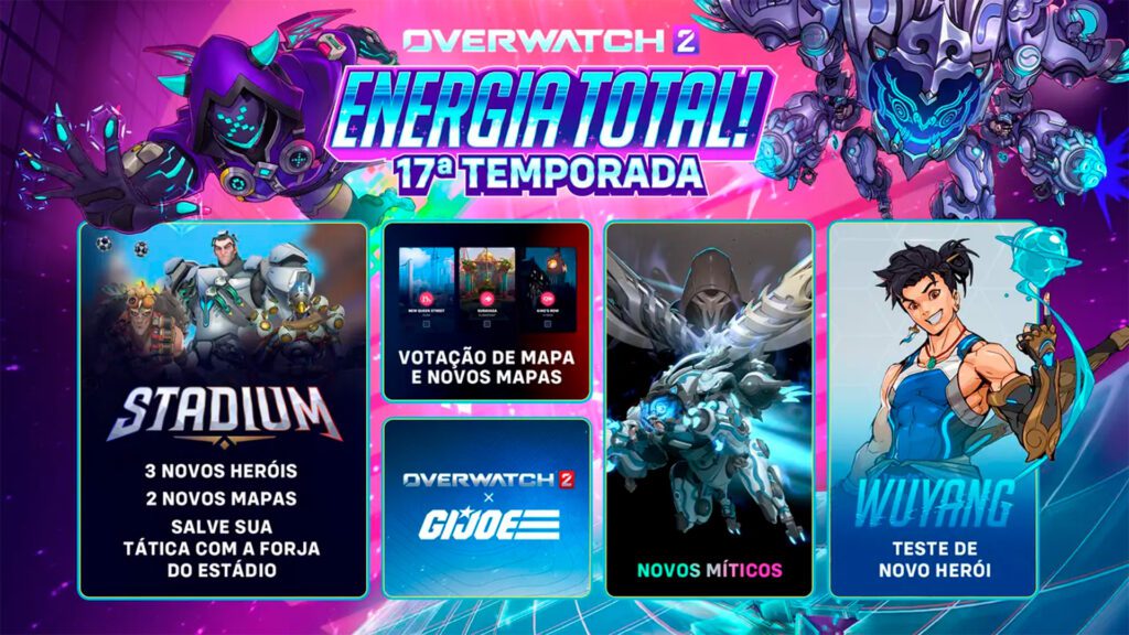 A 17ª Temporada de Overwatch 2 começa no dia 24 de junho, trazendo uma série de novidades que impactam tanto o modo casual quanto o competitivo. Entre os destaques, estão a estreia da Votação de Mapas, a introdução de dois itens Míticos no lançamento pela primeira vez e a evolução do modo Estádio, o PvP por rodadas do jogo.