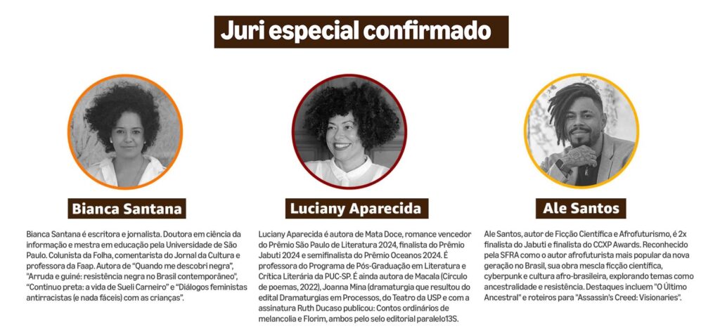 O ganhador recebe R$ 35 mil, além de publicação da obra na editora parceira e no programa de audiolivros. Os jurados convidados para a banca foram os renomados escritores Bianca Santana, Luciany Aparecida e Ale Santos. O evento de premiação aconteceu no dia 17 de novembro, no Cineclube Cortina em São Paulo.