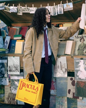 A bolsa Dior Book Tote, da Maison, foi reimaginada pelo Diretor Criativo Jonathan Anderson. O artista prestou essa homenagem à literatura clássica, remodelando as novas bolsas tote na coleção Book Cover, as quais são estampadas com as capas das primeiras edições de livros clássicos dos séculos XIX e XX. O ensaio fotográfico foi realizado por Angèle Châtenet, a qual capturou escritores, livreiros e amantes da literatura em uma variedade de cenários parisienses, as margens do rio Sena.