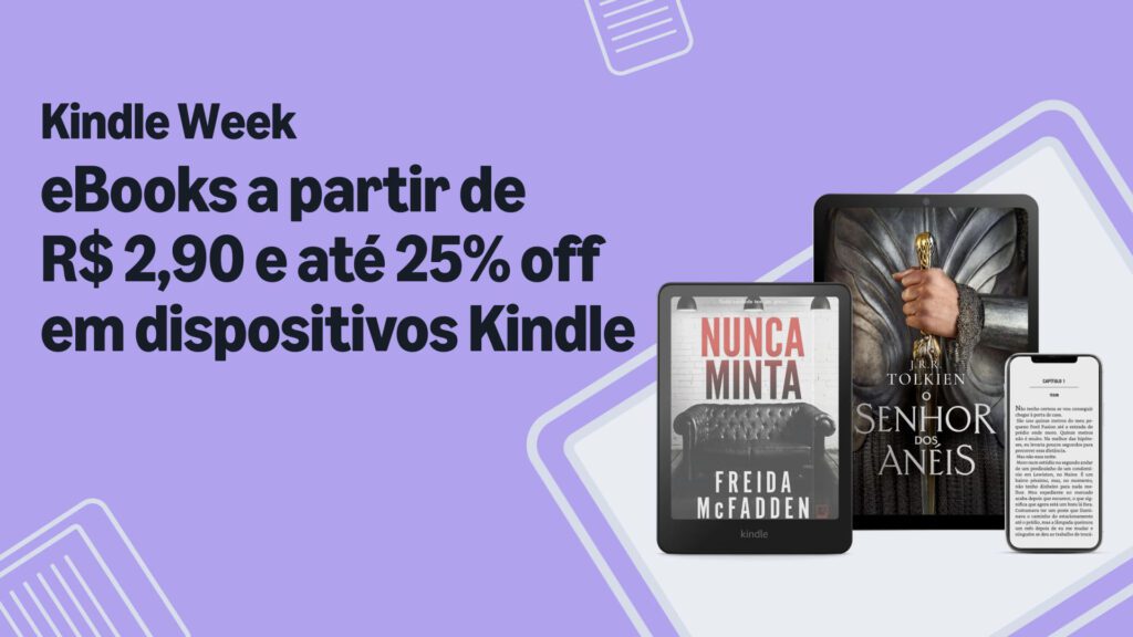 Uma das campanhas mais aguardadas pelos leitores brasileiros está de volta. A Kindle Week acontece entre 23 de fevereiro e 1º de março, trazendo milhares de eBooks com preços a partir de R$ 2,90, além de descontos de até 25% em dispositivos Kindle.