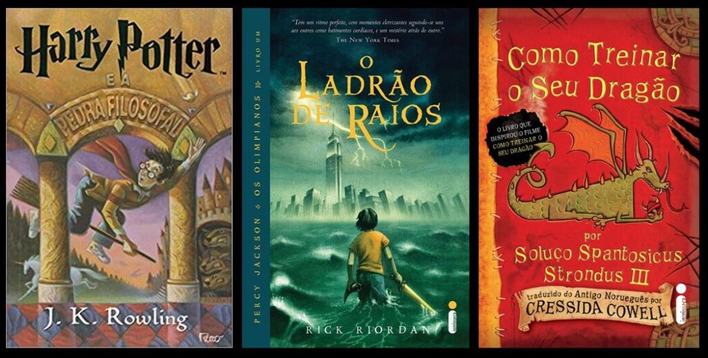 “Como Treinar o Seu Dragão” e “Percy Jackson e os Olimpianos” possuem uma linguagem narrativa mais humorada e pouco descritiva, com uso de gírias e estereótipos de jovens adolescentes desajustados, com protagonistas corajosos os quais enfrentarão monstros e lideranças, em uma luta pela sobrevivência e aprovação. Já “Harry Potter” possui uma narrativa mais centrada e mais madura, o que não impede que os jovens consigam entender a história, mas que também agrada bastante o público mais velho, pois acompanhamos o protagonista e seus amigos enfrentando uma série de aventuras fantásticas para solucionar um problema maior.
