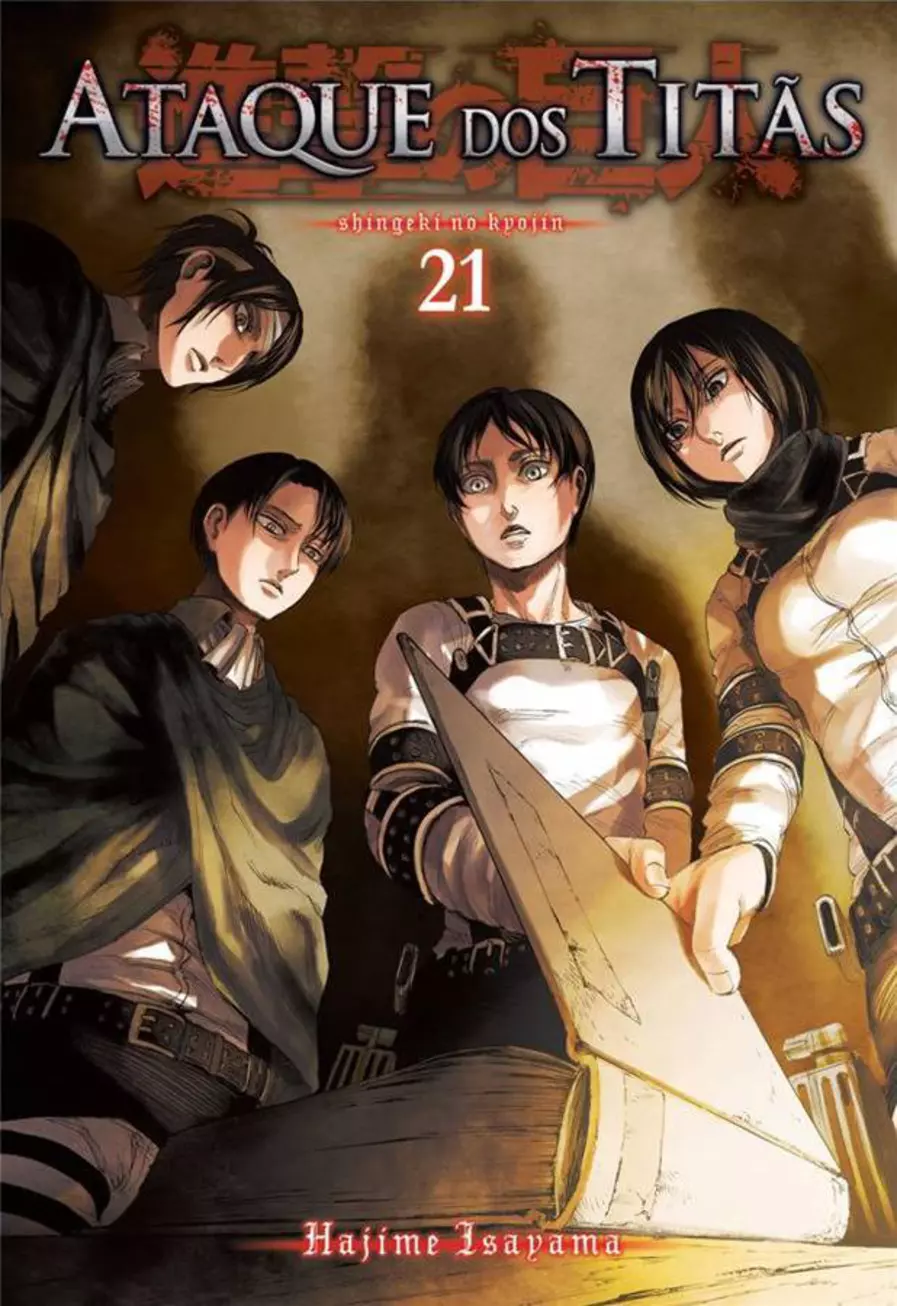 Sinopse do vol. 22: Eren e os remanescentes da Divisão de Reconhecimento finalmente chegam ao porão de sua antiga casa e entram em contato com a história por trás do povo que habita as muralhas, quem são os titãs e o que há no mundo ´lá fora´! E, indo mais a fundo, Eren mergulha nas memórias de seu pai e precisa lidar com as informações que descobre!