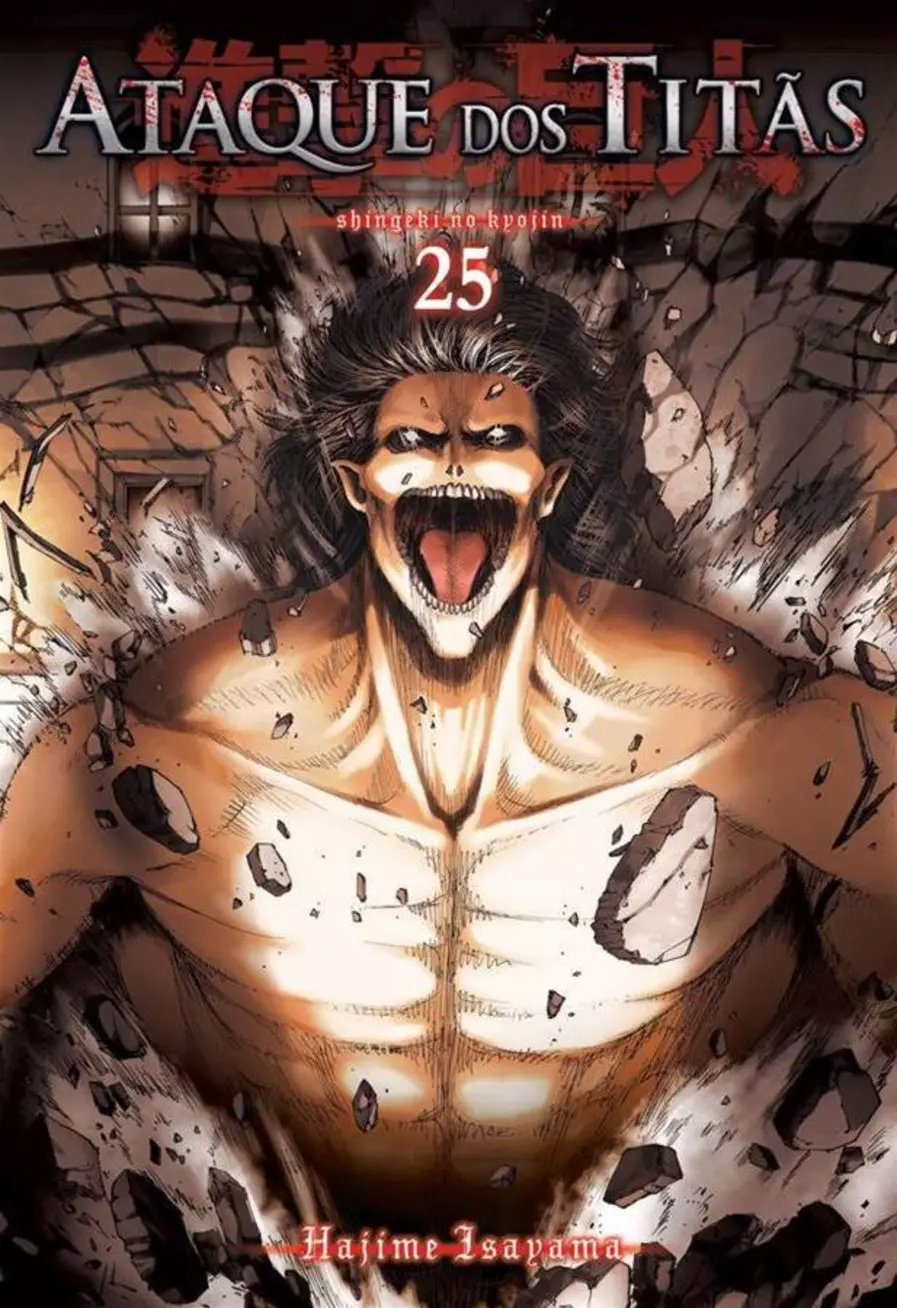 Sinopse do vol. 25: Falco leva Reiner a se encontrar com Eren, que quer falar com o antigo companheiro sobre o que pretende fazer em Marley enquanto é encenada uma peça sobre a história do Império de Eldia, os Titãs e a Ilha Paradis.