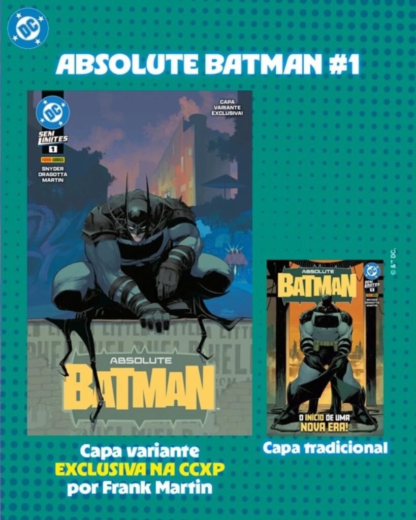 É mais uma a ação da Panini para manter o bom número de vendas das revista do Absolute Batman. A publicação teve enorme impacto nos Estados Unidos e também no Brasil. Lançada aqui no país, em setembro, a edição número 1 logo se esgotou e precisou de uma reimpressão. Nick Dragotta que é responsável pelos desenhos da saga e o próprio Frank Martin, também são convidados da CCXP.