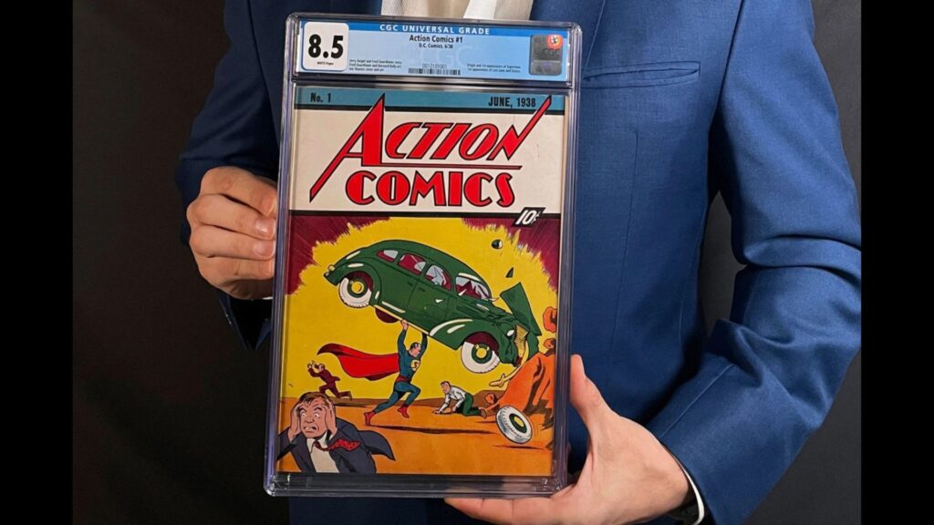 A Action Comics nº 1, lançada em junho de 1938, é considerada um dos quadrinhos mais importantes de todos os tempos. Foi nela que o mundo conheceu o Superman, criado por Jerry Siegel (roteiro) e Joe Shuster (arte). A capa, com o herói erguendo um carro acima da cabeça, tornou-se um símbolo absoluto da cultura pop e marca o nascimento da chamada Era de Ouro dos Quadrinhos.